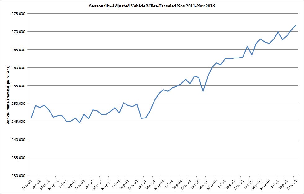 November seasonally-adjusted highway VMT all-time high, 0.4pct above Oct2016