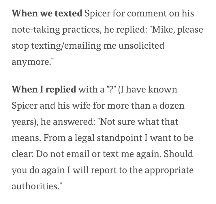 @seanspicer threatens to report@mikeallen to the "appropriate authorities" for, uh, texting him? https://www.axios.com/axios-am-2487771195.html …pic.twitter.com/KEyroQZKSd