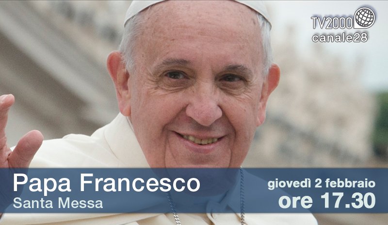 #PapaFrancesco per la Giornata della Vita Consacrata Dalle 17.30 in diretta su#TV2000 (Canale 28)pic.twitter.com/Y4MECtckDI