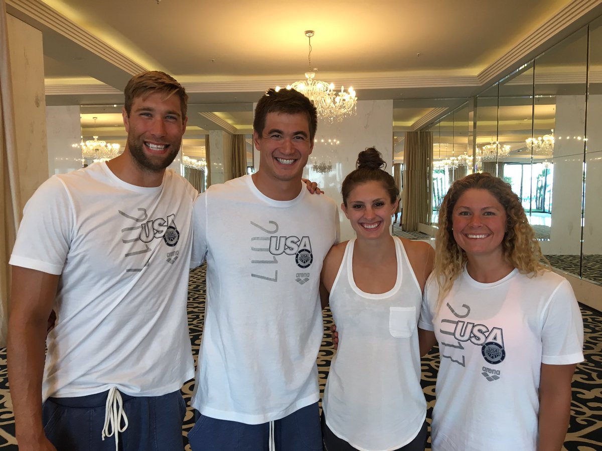 #TeamUSA captains for#FINABudapest2017:@MattGrevers,@Nathangadrian,@Katie_Meili and@ebeisel34!