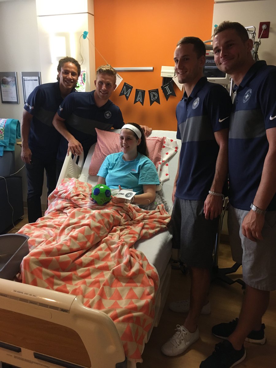 STLFC's , , , and visited some young fans as they made the rounds at today!