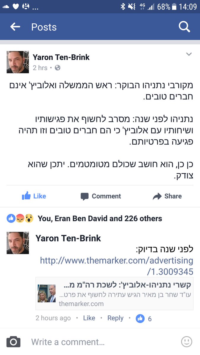 שלטון הליכוד בסכנה. חוקרי המשטרה נעים לבית ראש הממשלה. עמותות השמאל מסיעות אותם בצוללותhttps://twitter.com/talshalev1/status/885444814673784832 …