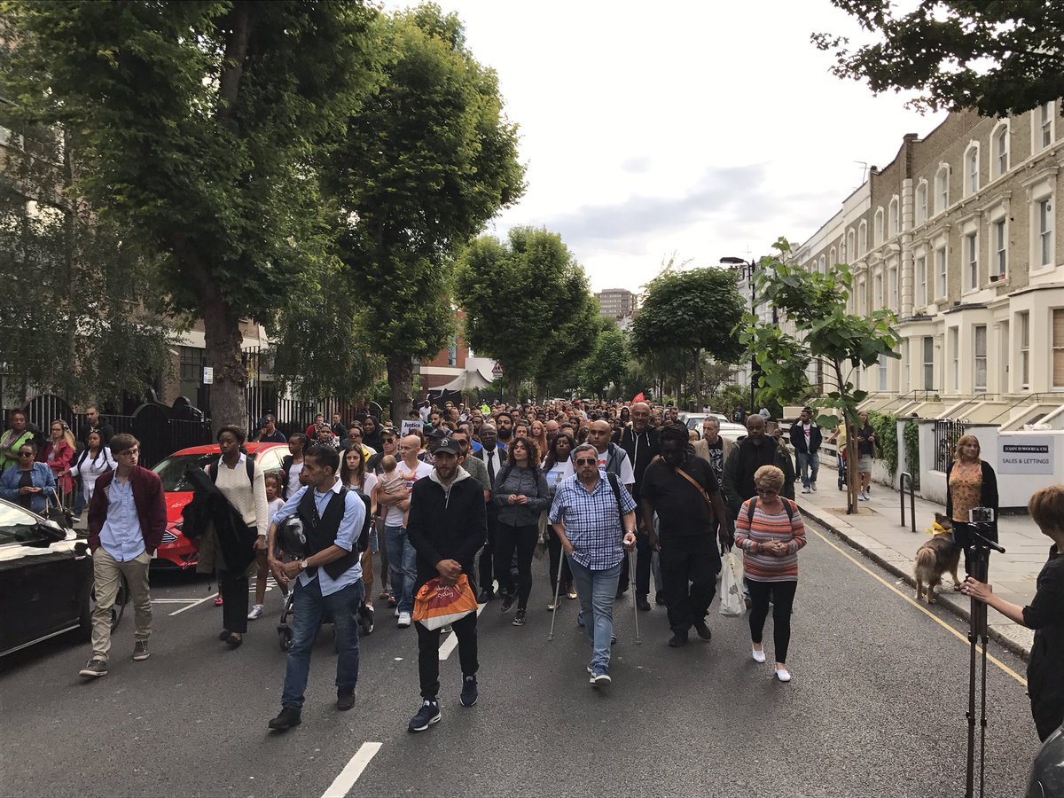 #GrenfellTower 2 month anniversary marchers have walked around North Kensington and are now beginning a vigil under the Westway.@LBCpic.twitter.com/aKtVDr7ZiV