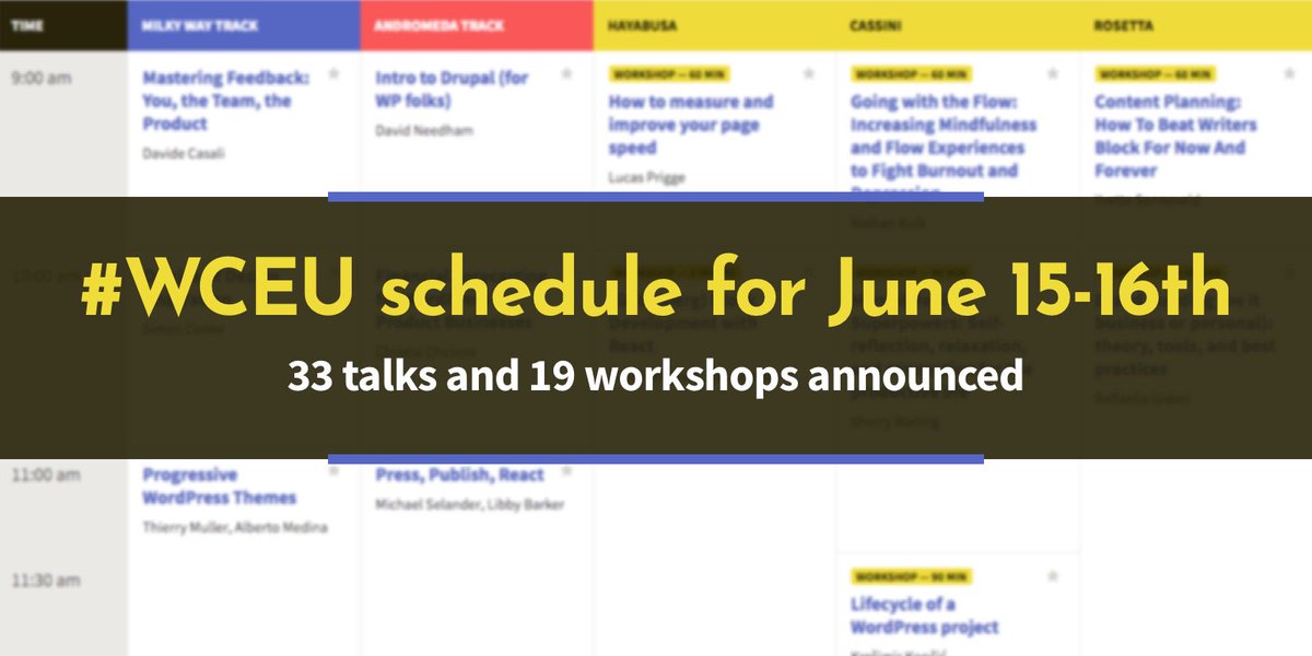 This year we’re introducing the #WCEU workshops so check them out and save yourself a spot! (8 of the workshops have already been booked