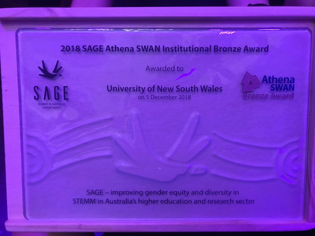 @UNSW’s receipt of a Bronze Award for gender equity in STEMM by@SciGenderEquity! The application was a labour of love - and I’m excited to see the Action Plan be implemented! Deep gratitude to our academic lead@la_warren - handing the reins to@hydro_lucy for 2019!pic.twitter.com/DHTLpwnxsV