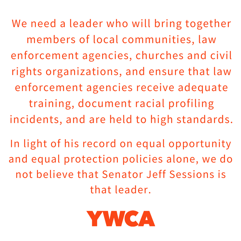 We are disappointed that Senate confirmed Jeff Sessions as US AG despite public opposition... http://www.ywca.org/site/c.cuIRJ7NTKrLaG/b.9512533/k.4259/Attorney_General_Sessions_Comment.htm …