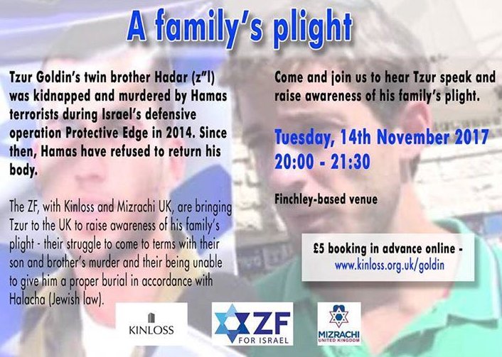 @TzurGoldin, brother of Hadar Goldin, who's body is held by#Hamas. Tzur is touring the#UK this week in the hope that he will raise awareness of his family's plight. See photos to hear him speak in#London or#Birminghampic.twitter.com/yHZLSDcLF3