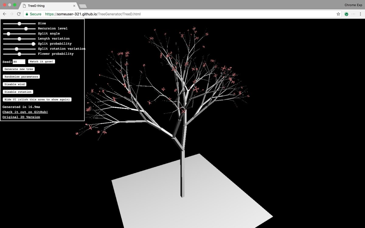 Simple Fractal Tree Generator - a p5.js experiment that creates 3D fractal trees by Chris Harrison https://www.chromeexperiments.com/experiment/treegenerator …pic.twitter.com/eMIxU8S5Xy