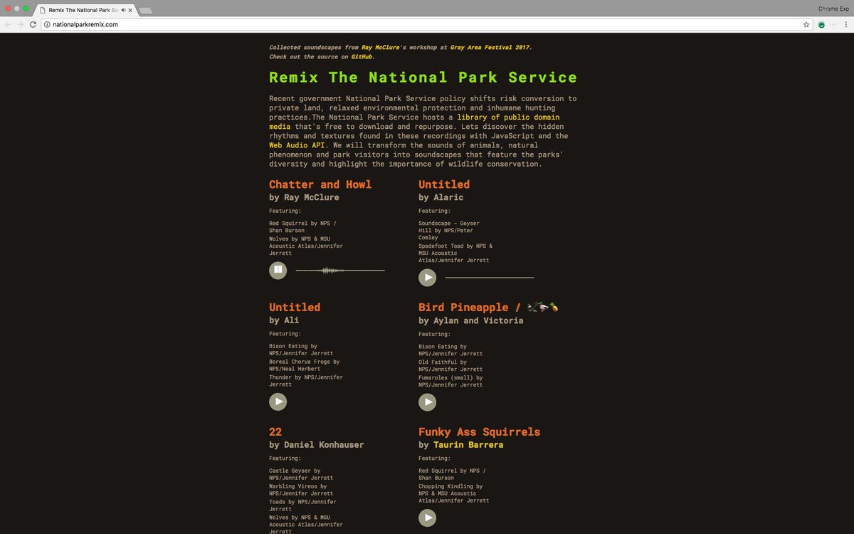 National Park Remix - soundscapes created from sounds of animals, natural phenomenon and visitors, by