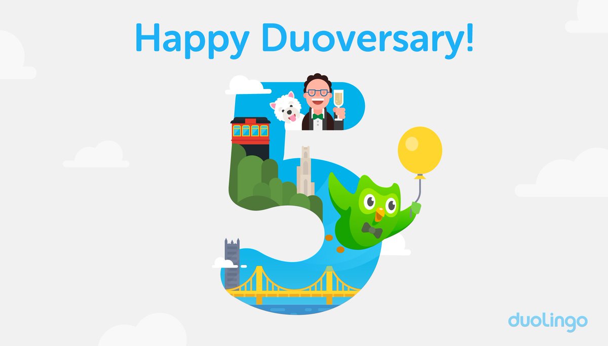 It’s Duolingo’s 5th birthday! That’s 5 years of bringing free language education to the world. Thank you for your support.pic.twitter.com/V4p0z4KPKa