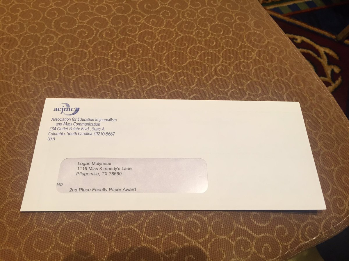 #AEJMC16 awards come with envelops. And your co-author's name.pic.twitter.com/wQmTf0UM8Y