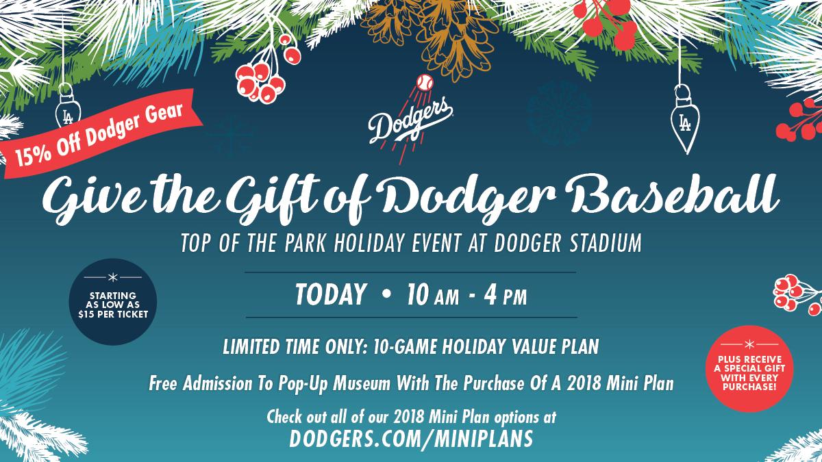 Dodger gear, mini plans and more! Stop by our Top of the Park Holiday Event at Dodger Stadium TODAY from 10 a.m. to 4 p.m. http://atmlb.com/2AYqm0M pic.twitter.com/dDsiWKJoBI