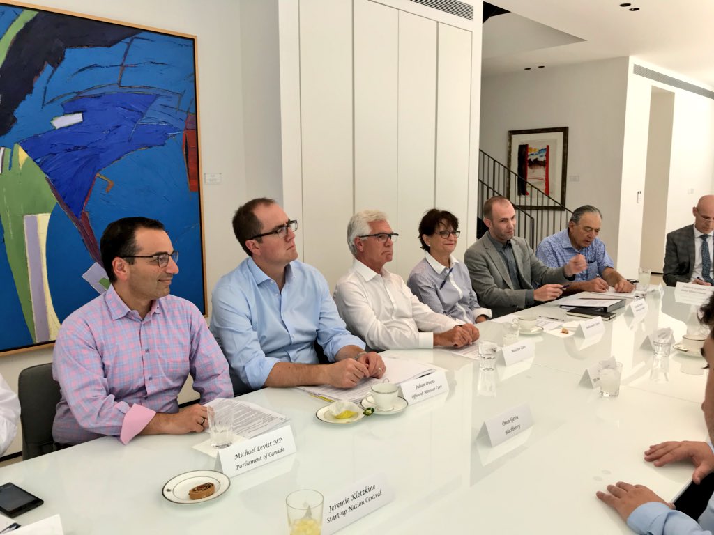 @jimcarr_wpg in a productive and engaging roundtable on corporate innovation, w/ group of leading execs doing business in#Israel. Lots of opportunities to expand Canada-#Israel biz linkages.