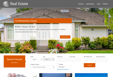 This is an example of a typical site a real estate agency would need. It includes a slider featuring some properties and provides a search function that allows visitors to look for properties meeting their criteria.