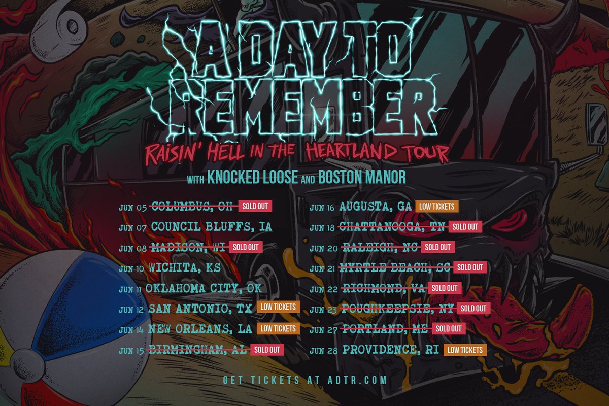 @knockedloose and@BSTNMNR have been added to the Council Bluffs show for the Raisin' Hell in the Heartland Tour! Gangs all here. Tickets are running low for quite a few dates so get tickets now at http://ADTR.com pic.twitter.com/TClYQ45UWW