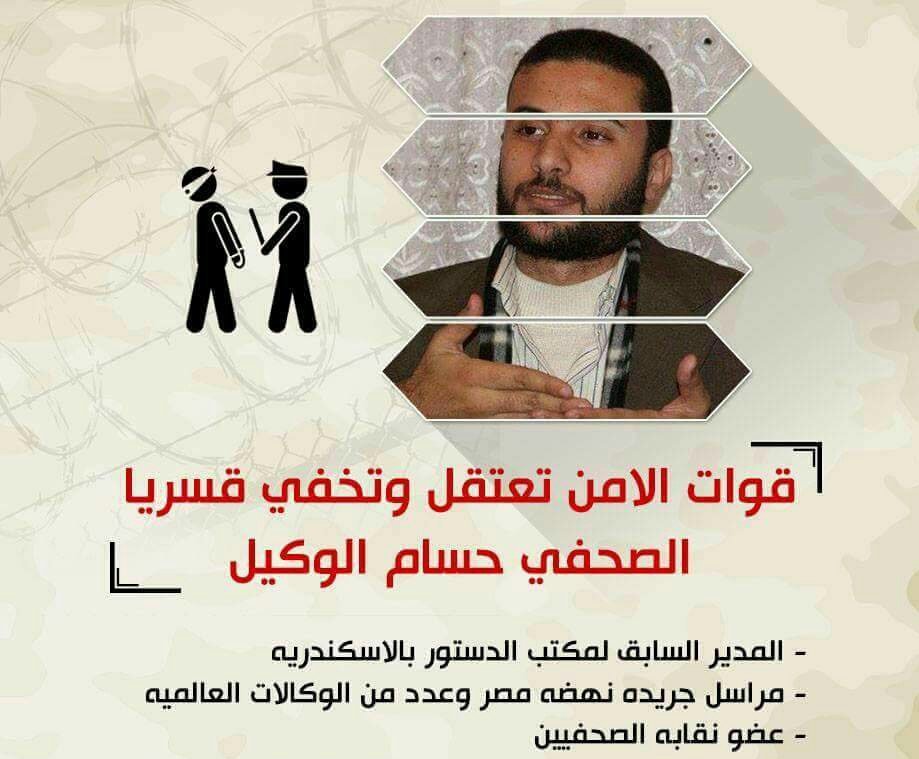 اليوم السادس والعشرون على اعتقال واخفاء الصحفي السكندري حسام الوكيل..