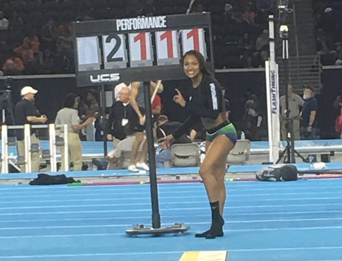 Excited about future of Tara Davis as a ! She soared to a HS NATIONAL INDOOR RECORD of 21-11 tonight in the long jump!