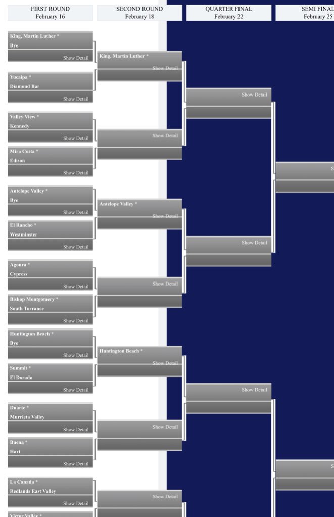 Girls basketball pairings, 1A Division: Cypress at Agoura, Hart at Buena, 7 p.m. Thursday.