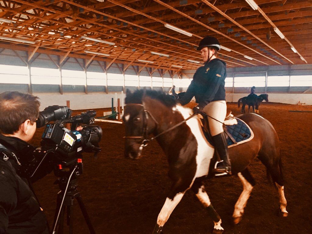 Here's a behind-the-scenes look at an upcoming segment we filmed with airing May 7 at 8:30 PM on ! Pictured are host and her guide dog Frances speaking with Champ Graduate James, and Champ Olivia riding her horse.