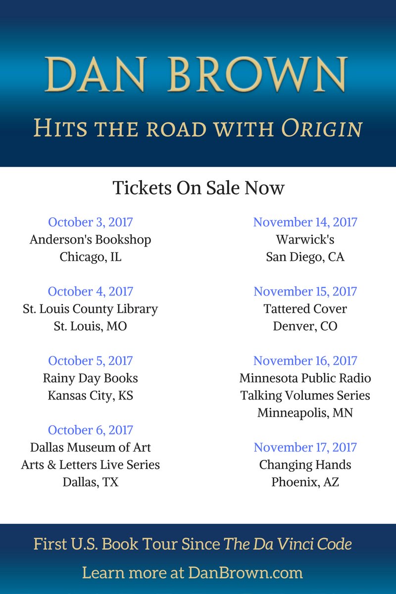 @AuthorDanBrown live! Don't miss the#DanBrownOrigin tour this fall! http://danbrown.com/dan-brown-origin-book-tour-2017/ …pic.twitter.com/0QyvZ7dfQt