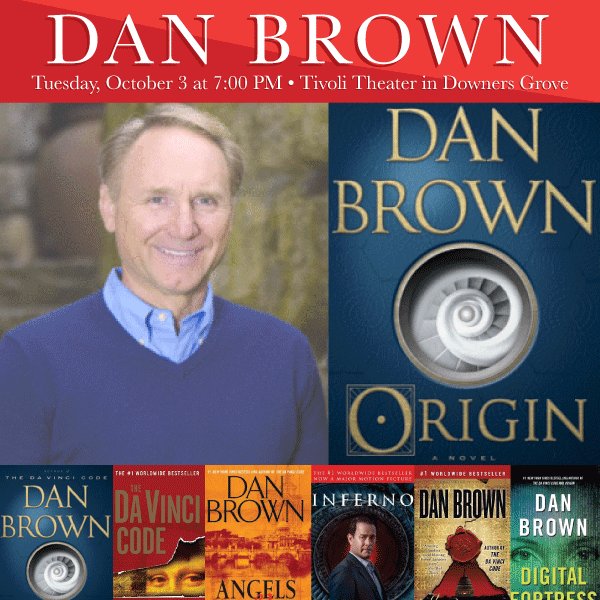 @AuthorDanBrown Tue, October 3 at 7PM at@TivoliTheatreIL. Tickets available now! http://bit.ly/2tnwgod pic.twitter.com/KmY6nQBKhq