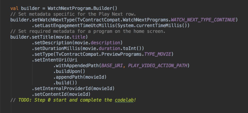 @HBO puts shows in the Play Next row on your#AndroidTV? You can do the same with your ATV app! This Codelab walks through all the different aspects of the Play Next row. We'd love to hear your feedback! Try it now → https://goo.gl/jXBtHS pic.twitter.com/10TF7jjIoG