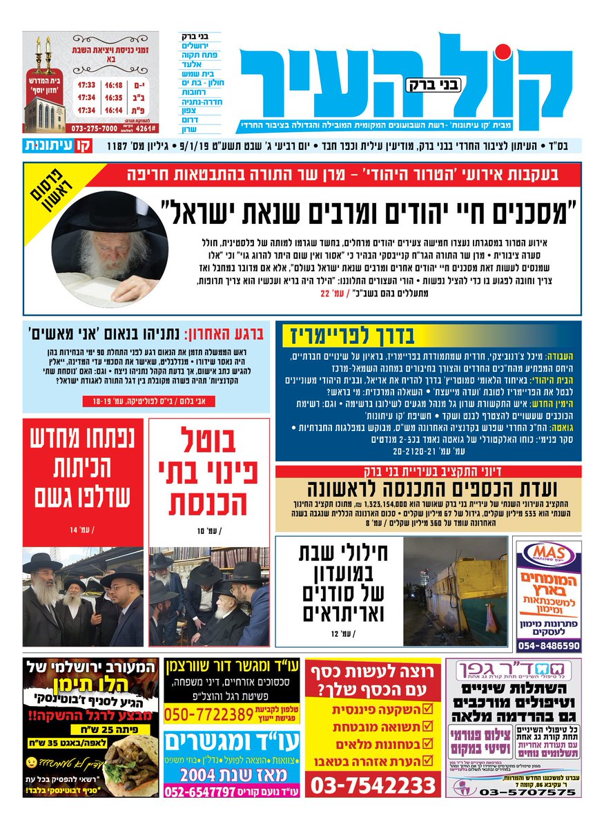 פרסום ראשון דרמטי בשערי 'קו עיתונות' מחר: מרן שר התורה הרב קנייבסקי על תופעת 'הטרור היהודי' - "מסכנים חיי יהודים ומרבים שנאת ישראל"pic.twitter.com/YFa4eFQMlo
