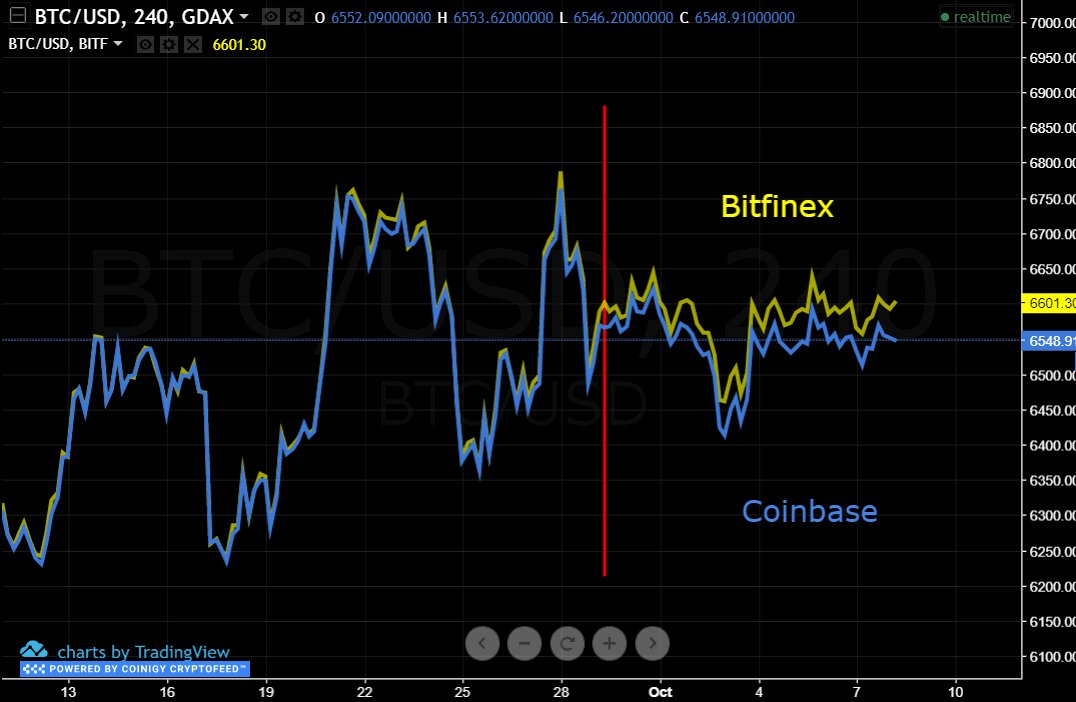 Bitfinex Coinbase spread at a new-wide, $70. "Look, the Pyramid, it's opening wide! Which one? The one with the ever-widening hole in it!" Firesign Theater. (1968) Who remembers Firesign Theater?>pic.twitter.com/UddGuNYULA