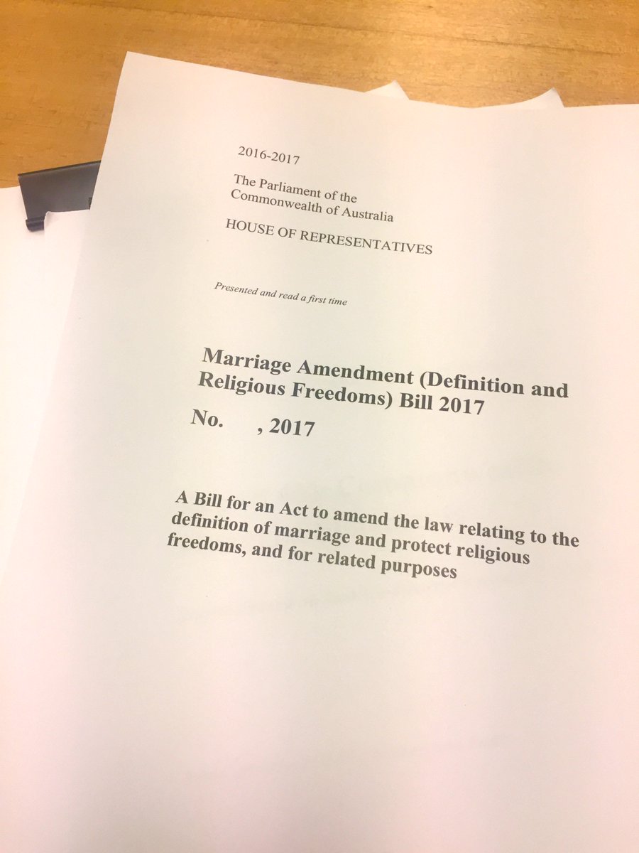 A Bill that will allow two people to marry, while at the same time protecting religious views about marriage in Australia.pic.twitter.com/MM40b6FNRj