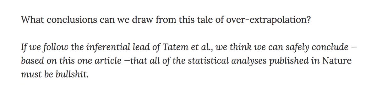 New Calling Bullshit case study: the gender gap in 100 m sprint times. A cautionary tale against over-extrapolation. http://callingbullshit.org/case_studies/case_study_gender_gap_running.html …pic.twitter.com/2Q6cudjG6Y