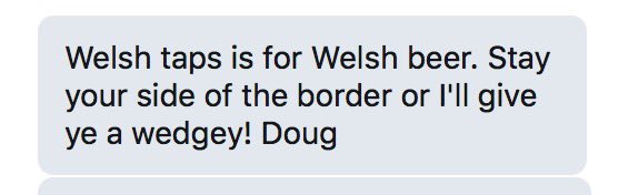 Not every day you get warned to stay away from Welsh pubs by an irate New Zealander!