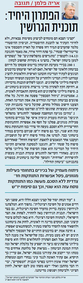 מאמר תגובה של - חבר תנועת 'מפקדים למען ביטחון ישראל' בתגובה למאמרו של בעיתון ישראל היום