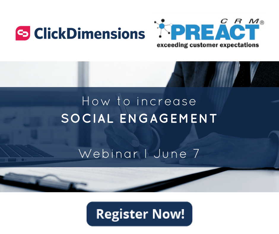 @PreactCRM on June 7th will demonstrate how our social engagement solution increases web visits & social insights in one convenient platform. Register!#ClickDwebinar https://okt.to/ooeKLj pic.twitter.com/Z7mC6uhBOI