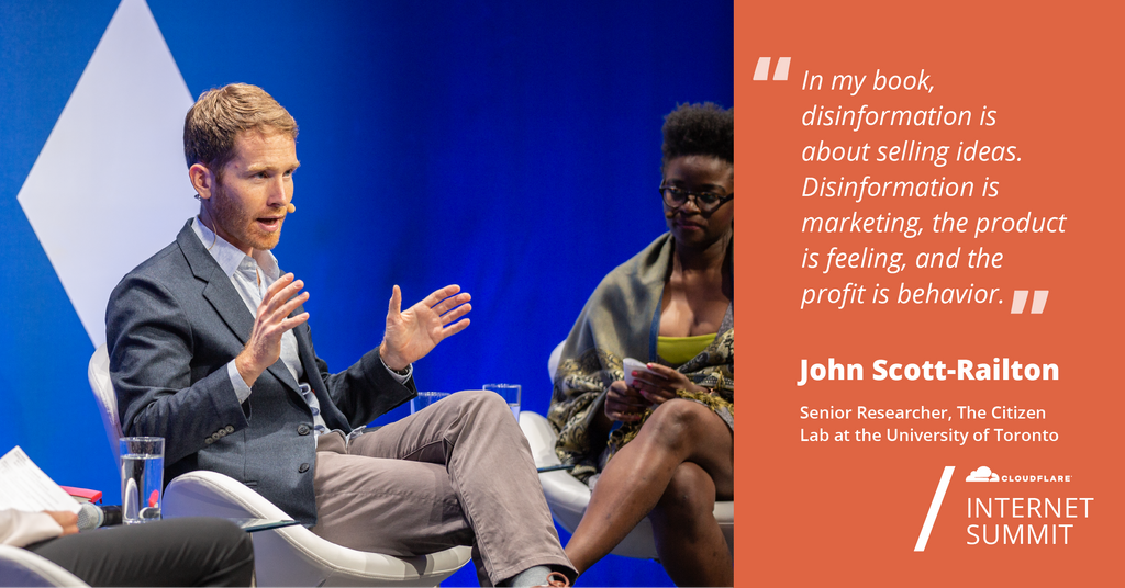 @Cloudflare#InternetSummit! Stopping the Global Spread of Disinformation, with@jsrailton (Senior Researcher at@citizenlab) and @JuliOwono (Executive Director,@internet_sf). Watch the livestream at https://cfl.re/2yeJxix pic.twitter.com/vcTIXcoOep