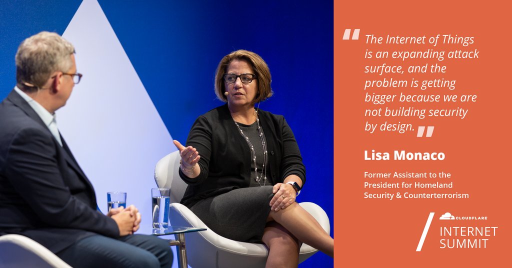 @Cloudflare#InternetSummit! Cyber: The New Frontier in State Warfare, with Lisa Monaco (Sr. Fellow,@nyulaw & former chief counterterrorism advisor for the President). Find the livestream now, and archived session videos later, at https://cfl.re/2yeJxix pic.twitter.com/SCPdN8fSpf