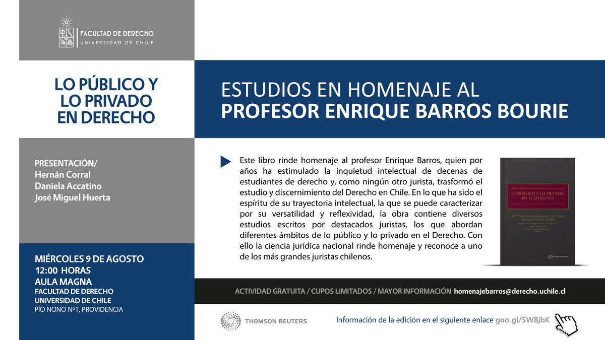 Te invitamos a presentación de "Lo público y lo privado en Derecho", libro que rinde homenaje a prof. Enrique Barros