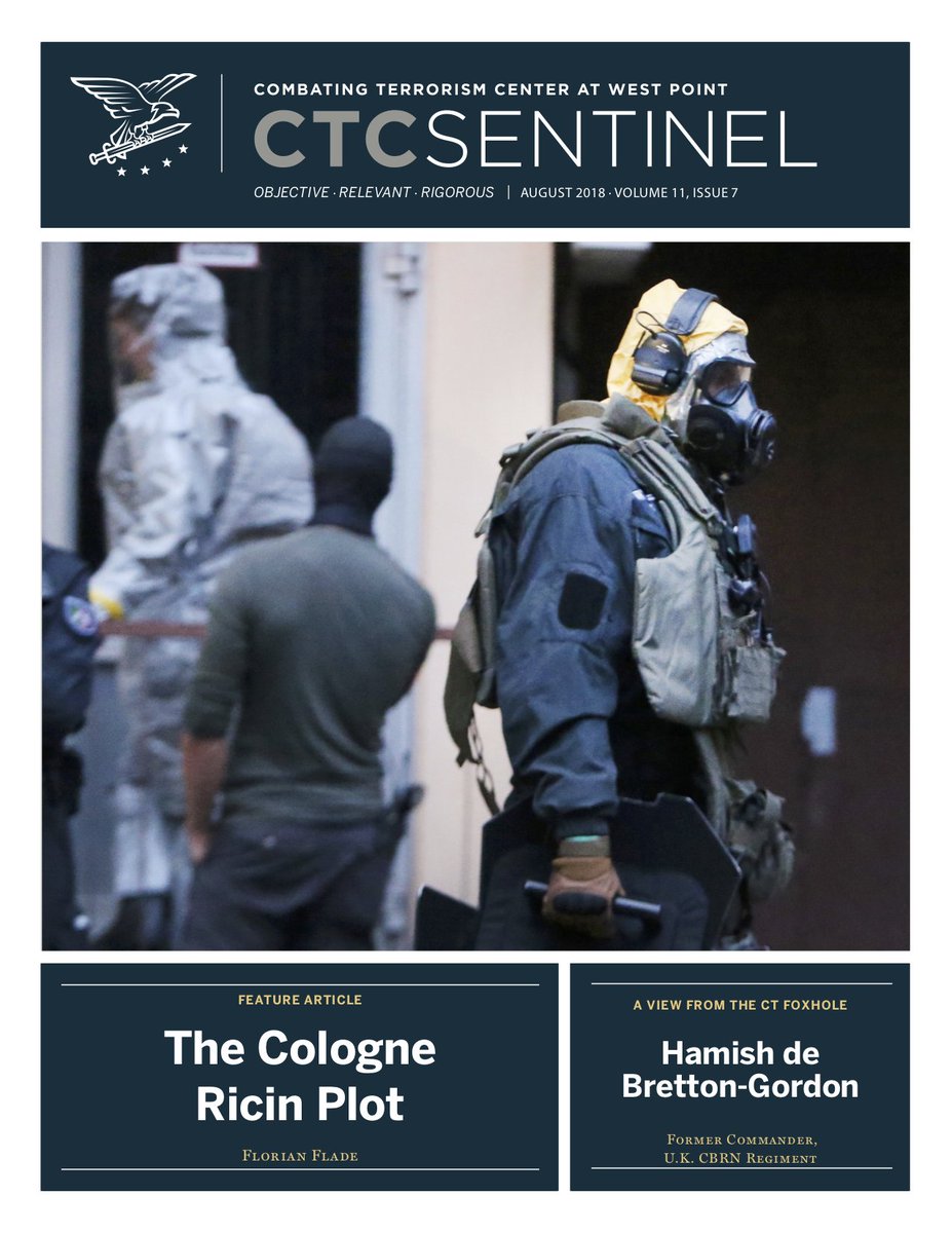 #CTCSentinel w/ focus on chem & bio terror. Details on the thwarted#Cologne#ricin plot, intv w/#CBRN expert, a look at Iranian terror, the renewed threat to#Mauritania, plus an estimate of fighter numbers in#ISIS cells across#Africa https://ctc.usma.edu/august-2018 pic.twitter.com/qIvuBWW6jp