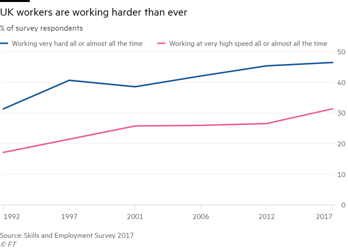These are shocking statistics showing how our upside-down our economy is. Workers in the UK are working harder and faster than they were in 1992 - and it's getting worse. We work harder for less. This is a crisis in work. https://buff.ly/2zGCDo8