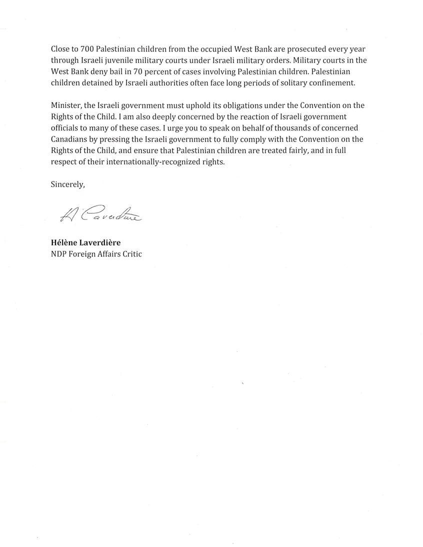 This week, Canadian MP Hélène Laverdière called on the Canadian government to press Israel to comply with international law in its treatment of Palestinian child detainees. http://bit.ly/2EbwX6l cc