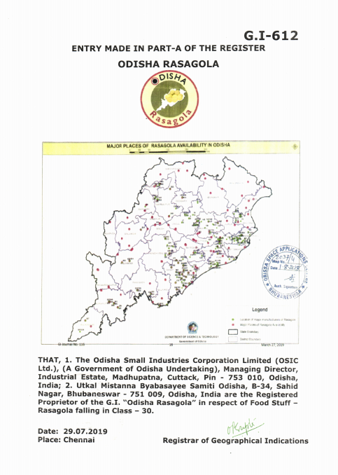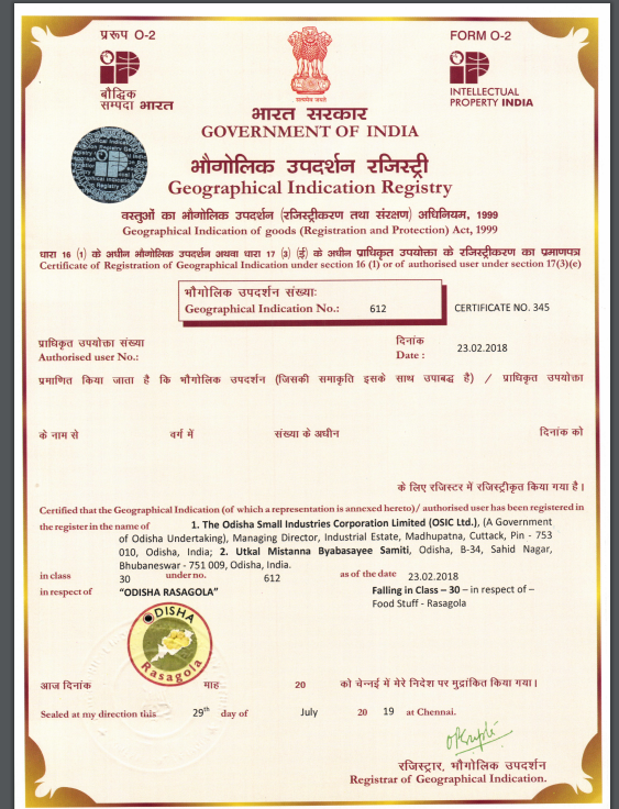 Odisha's Rasagola gets Geographical Indication (GI) tag. The name of the Geographical Indication to be read as "Odisha Rasagola"