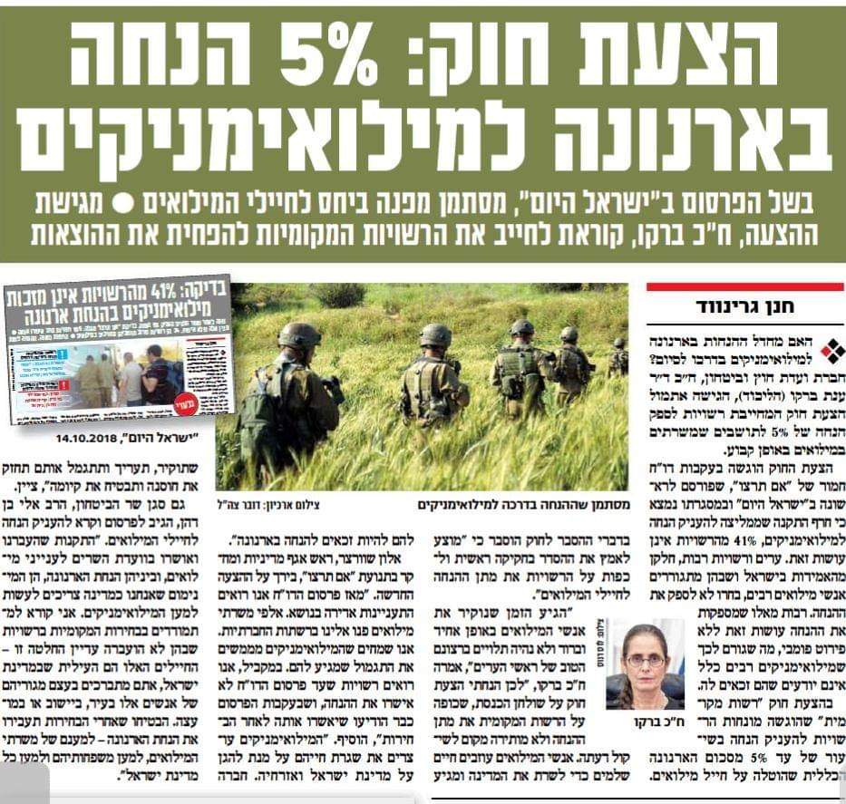 הגיע הזמן שנוקיר את אנשי המילואים באופן אחיד וברור ולא נהיה תלויים ברצונם הטוב של ראשי הערים לתת הנחה בארנונה. אנשי המילואים עוזבים חיים שלמים כדי לשרת את המדינה, ומגיע להם להיות זכאים להנחה זו. על פי החוק שלי הם יהיו זכאים וכך ראוי שיהיה.pic.twitter.com/c1uipBVaLI