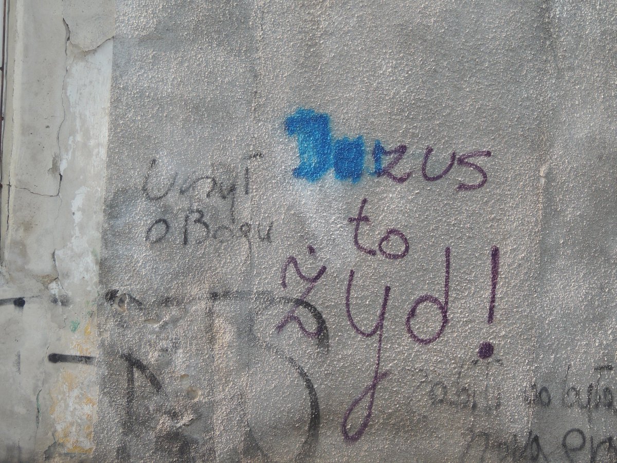 A Lodz en Pologne, des anonymes répondent aux graffitis antisémites omniprésents dans le quartier de Baluty, en rappelant à leurs compatriotes pour la plupart très croyants que Jesus était juif !!! Je fais peut-être du hors sujet mais j'avais envie de partager l'image !