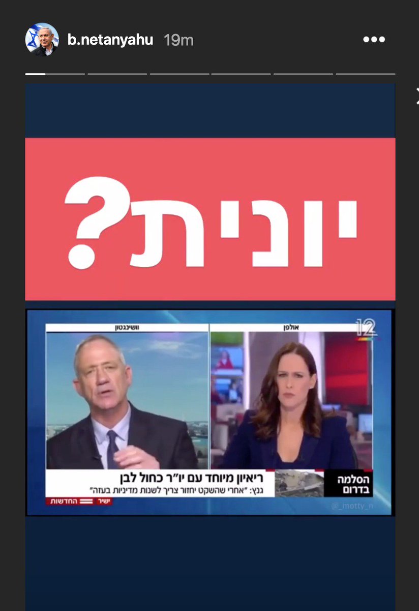 Israel is under rocket fire and its Prime Minister and Defense Minister is posting instagram stories mocking a Benny Gantz interview.
