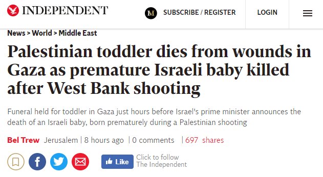 Horrendous coverage. Couldn't be bothered to report the original story when a pregnant mother and father were shot by a Palestinian terrorist, and now that their child - delivered early as a result - has died, readers are treated to this moral equivalence pap.