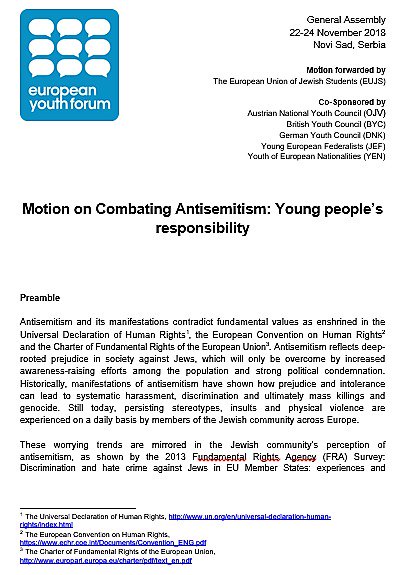 Europe's biggest youth body, the @Youth_Forum passed the#EUJS motion on Combating#Antisemitism, adopted@TheIHRA def! Thank you @JEF_Europ@YenJev@bycLIVE@dnk_germany@_BJV_ for being our co-sponsors!
