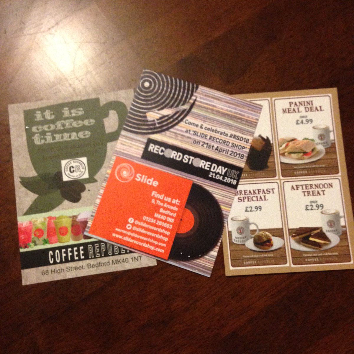 #RSD18#Bedford. Not only will@ArcadiaSweets have their tasting table out, the lovely folks@bedfordcoffee have got these for you hardy queuers. We'll be handing them out with your queue tickets. Warren's is a cappuccino...pic.twitter.com/zxHL5MtPN4