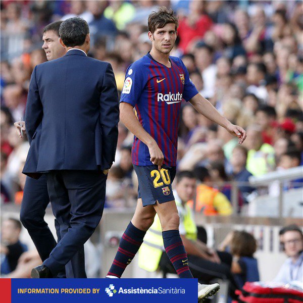 Tests have confirmed that @SergiRoberto10 has pulled his rectus femoris muscle. He will miss the next match, and his availability after that depends on how the injury develops