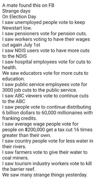 If you are feeling depressed about the election result, spare a thought for people on or perhaps the kids who Dutton continues to torture with impunity.