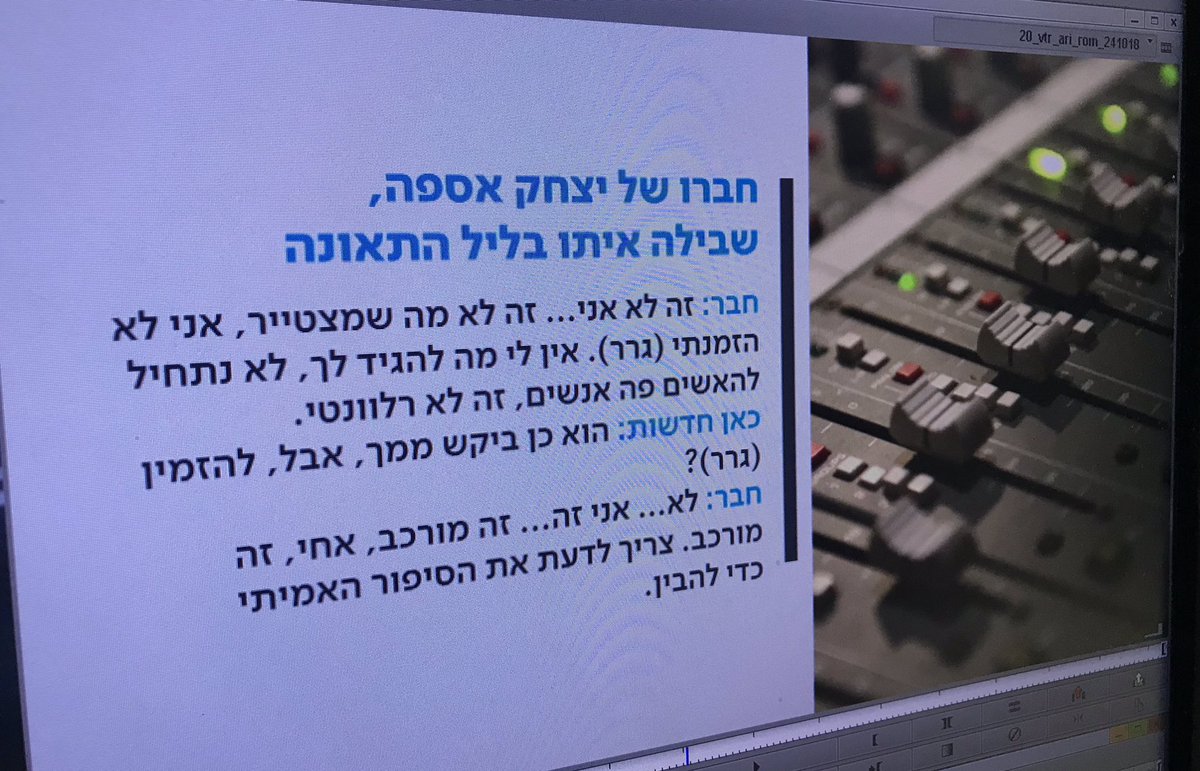 הערב במהדורה: חברו של יצחק אספה, שבילה איתו בליל התאונה, מתייחס לראשונה לשיבוש החקירה - ולהזמנת הגרר שנועדה להעלים את הרכב הפוגע מהזירה. מיד ב-