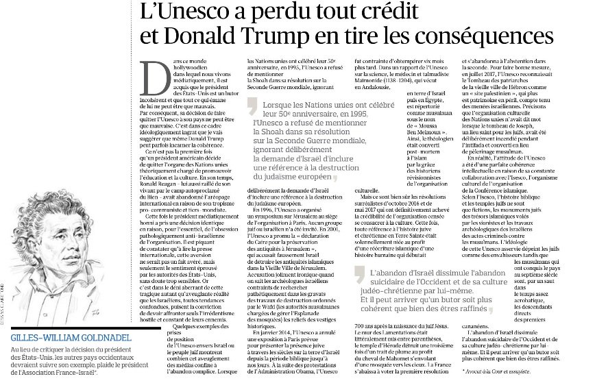 L'Unesco a perdu tout crédit et Donald Trump en tire les conséquences Ma tribune parue ds